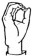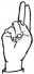На ћирилици написано КСЕНИЈА МУМАЛО састоји се из 13 слова [?]. Исписано ћириличном једноручном азбуком за глувонеме: